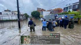 Álamo, Ver., 10 de octubre de 2025.- La Marina informó que desplegó 100 elementos y 17 vehículos en Álamo y Poza Rica para apoyar a la población. La ayuda incluye traslados, pipas de agua, ambulancias y motobombas. Ya reportan 3 evacuaciones médicas y 116 personas auxiliadas en zonas inundadas.