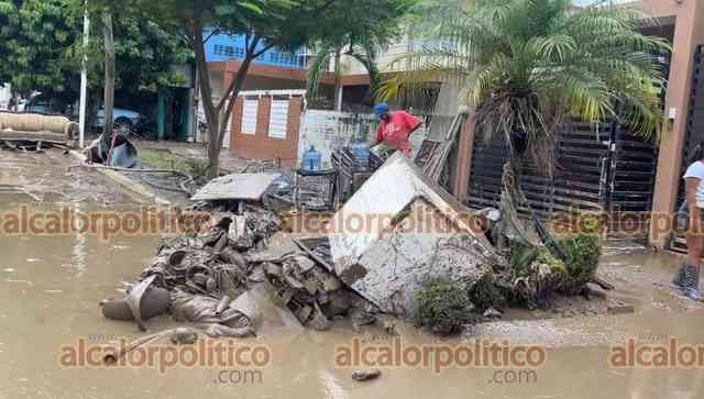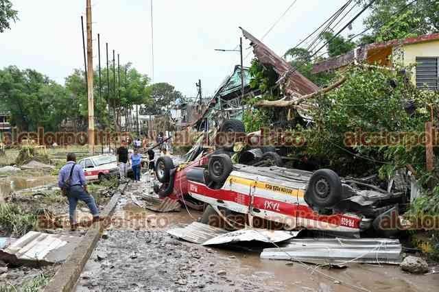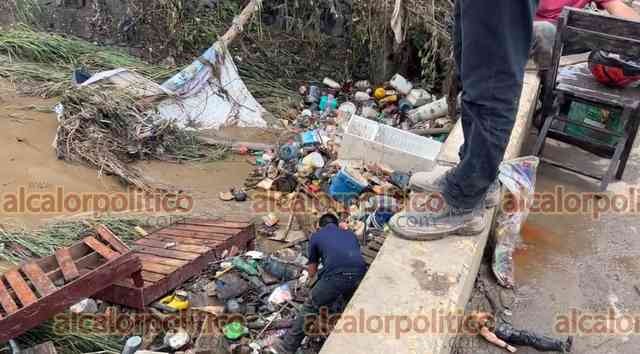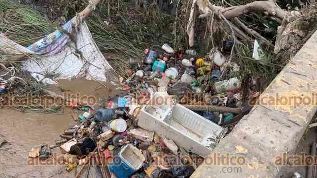 Poza Rica, Ver., 11 de octubre de 2025.- Al disminuir el nivel del cauce del río Cazones quedaron a la vista los grandes daños que sufrió la población tras la grave inundación del viernes.