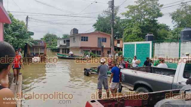 Tempoal, Ver., 11 de octubre de 2025.- La mañana de este sábado calles de esta localidad permanecen inundadas tras las fuertes lluvias. Pobladores de algunas comunidades también solicitan ayuda.