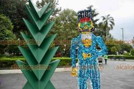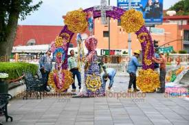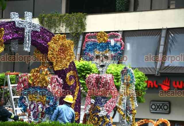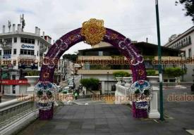 Xalapa, Ver., 13 de octubre de 2025.- Trabajadores del Ayuntamiento iniciaron con la instalación de adornos con motivo del Día de Muertos, en el parque Juárez.