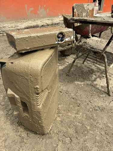 Coxquihui, Ver., 13 de octubre de 2025.- Docente exhibió que pese a la condición de la Telesecundaria “Miguel Alemán Valdés”, llena de lodo por la inundación, sigue dando clases pues en este municipio no hubo suspensión oficial de actividades.