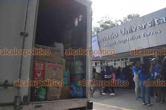 Xalapa, Ver., 14 de octubre de 2025.- En el Gimnasio Universitario “Miguel Ángel Ríos”, así como en la Facultad de Biología y Ciencias Agrícolas se instalaron módulos de acopio para recaudar víveres y llevarlos a los damnificados por lluvias e inundaciones en varios municipios de la zona norte.