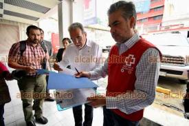 Xalapa, Ver., 14 de octubre de 2025.- El rector de la Universidad Veracruzana, Martín Aguilar, acudió a la Cruz Roja para entregar las toneladas de ayuda que ha donado la sociedad en centros de acopio de la institución para llevar a la región norte de Veracruz.