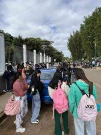 Xalapa, Ver., 15 de octubre de 2025.- Estudiantes de la Universidad Veracruzana realizan protesta pacífica en apoyo a los estudiantes desaparecidos en Poza Rica.
