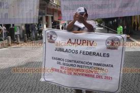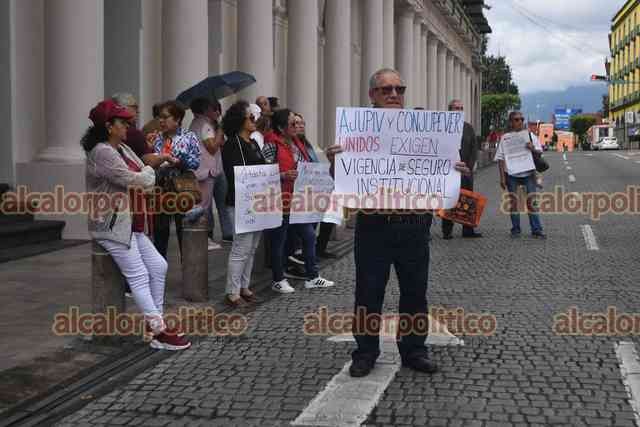 Xalapa, Ver., 16 de octubre de 2025.- Este jueves, pensionados afiliados a la AJUPIV retomaron acciones para exigir el pago del seguro institucional. Bloquearon la calle Enríquez a la altura de Dr. Lucio, en el centro de la Capital. Tome previsiones.