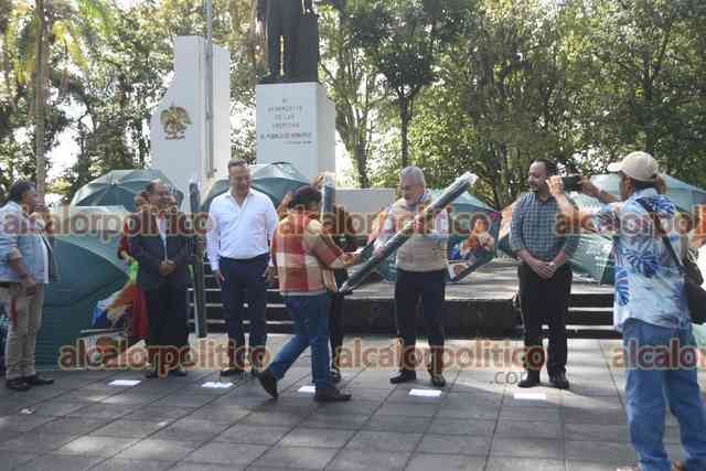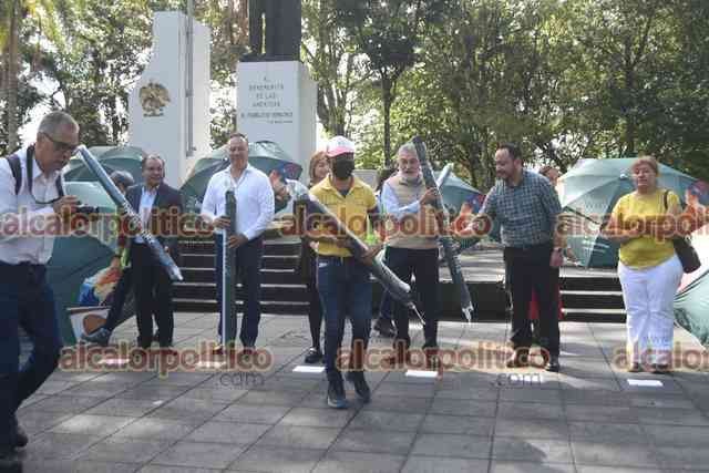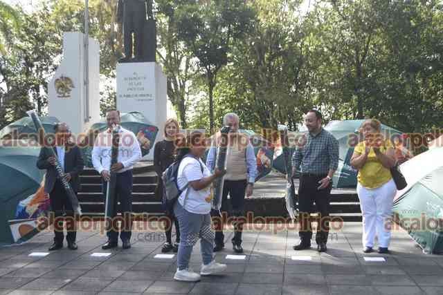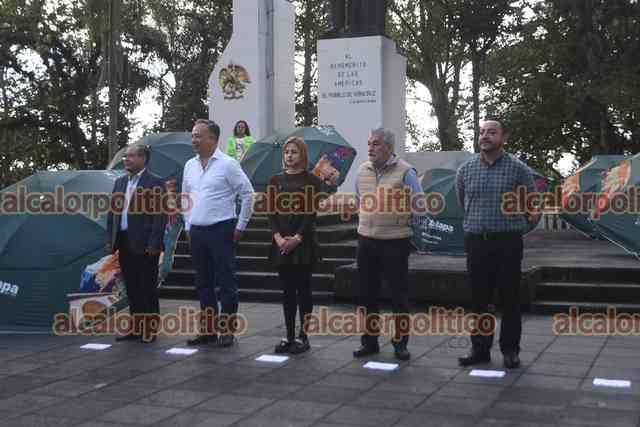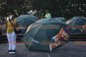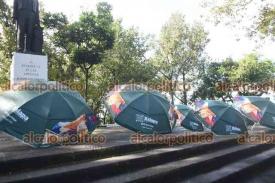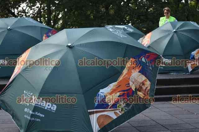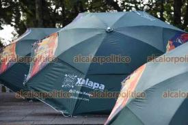 Xalapa, Ver., 16 de octubre de 2025.- El Ayuntamiento entregó sombrillas para comerciantes del parque Juárez. Están adornadas con imágenes representativas de la Capital.