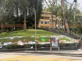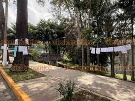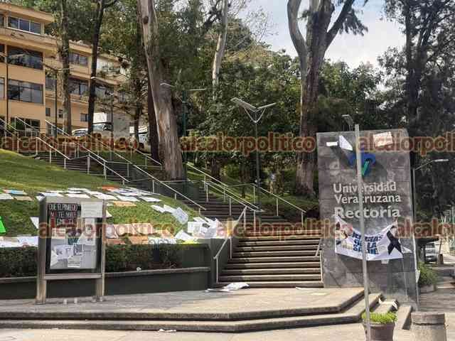 Xalapa, Ver., 18 de octubre de 2025.- Tras la marcha que el viernes hicieron estudiantes para acusar “negligencia” de la UV por la muerte de compañera del campus Poza Rica, la zona universitaria se observa vacía. Sólo quedaron cartulinas y pancartas con sus reclamos.