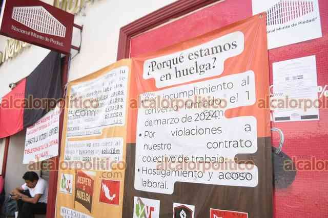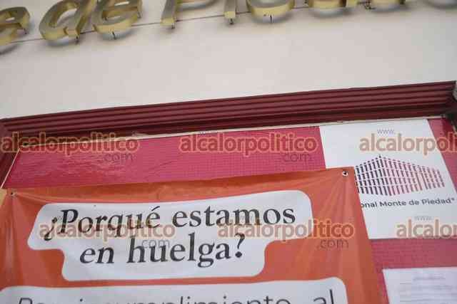 Xalapa, Ver., 20 de octubre de 2025.- El sindicato del Monte de Piedad continúa en huelga por incumplimiento de contrato por parte de la empresa. Piden a los usuarios no pagar refrendos o mensualidades en línea.