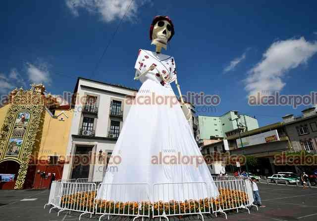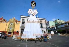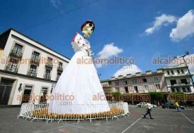 Xalapa, Ver., 26 de octubre de 2025.- Previo al Día de Muertos, fue colocada la catrina monumental en Plaza Lerdo.