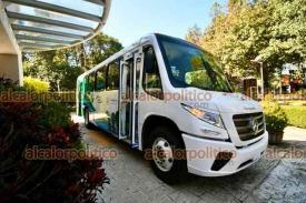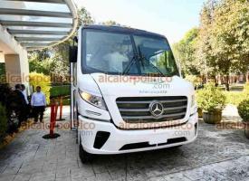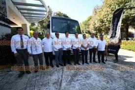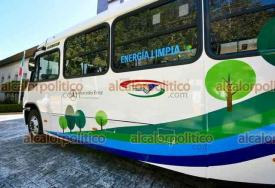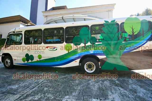Xalapa, Ver., 28 de octubre de 2025.- El Servicio Urbano de Xalapa dio el banderazo de salida a su nueva unidad ecológica, modelo Mercedes Benz 2026, “totalmente a combustión diésel, una energía limpia que es menos contaminante”.
