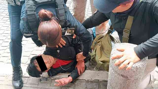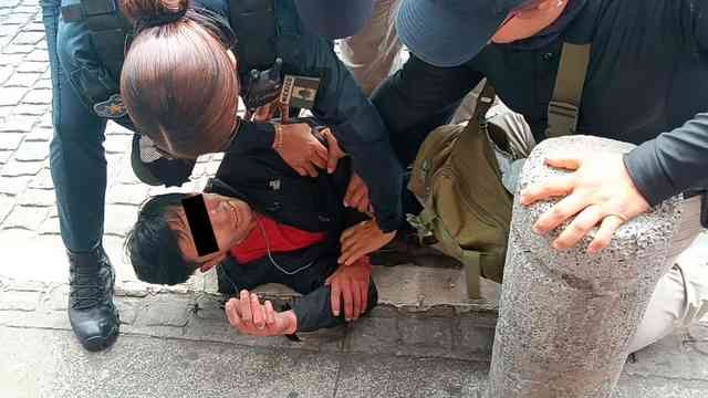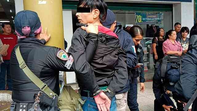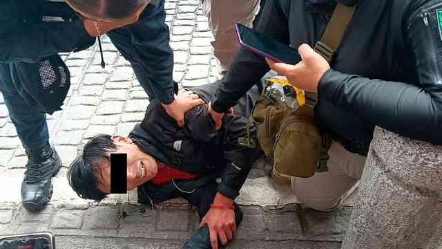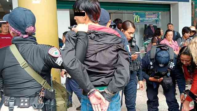 Xalapa, Ver., 6 de noviembre de 2025.- Hombre fue sometido y detenido por policías tras ser señalado de robar en la tienda Chedraui de la calle Lucio, en el Centro.