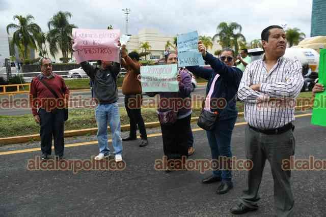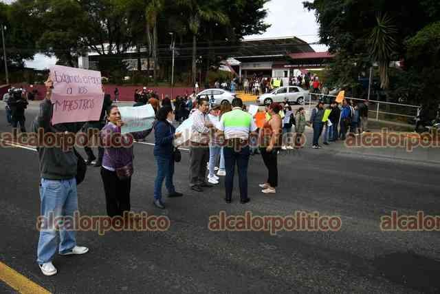 Xalapa, Ver., 12 de noviembre de 2025.- Docentes de la UPAV que exigen sus pagos bloquearon la tarde de este miércoles la avenida Lázaro Cárdenas, frente a la SEV.