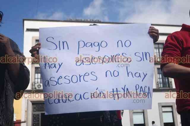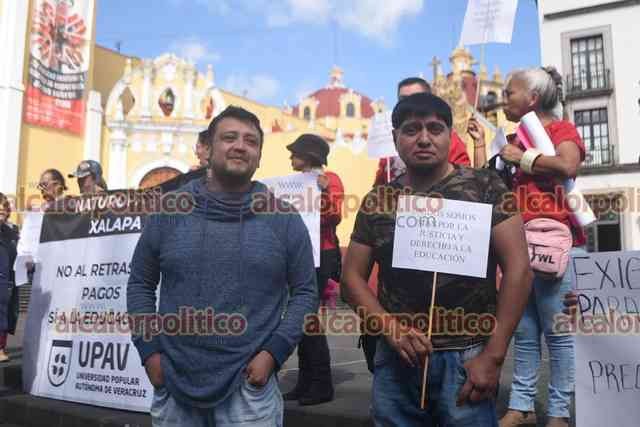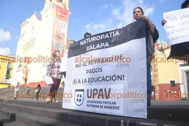 Xalapa, Ver., 14 de noviembre de 2025.- Estudiantes de la UPAV se manifestaron en apoyo a sus docentes. Lamentan que, pese a que pagan puntualmente sus cuotas, sus asesores llevan 2 semestres sin salario. Hacen bloqueos intermitentes en la calle Enríquez.