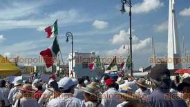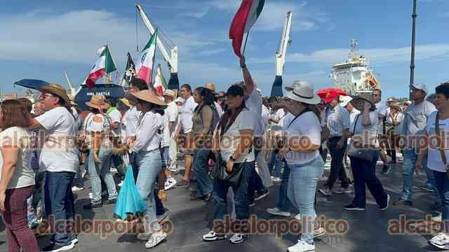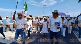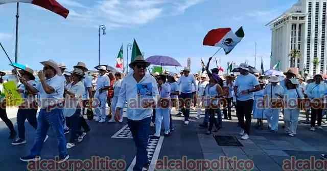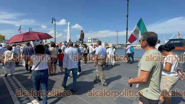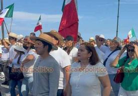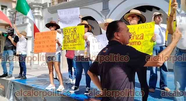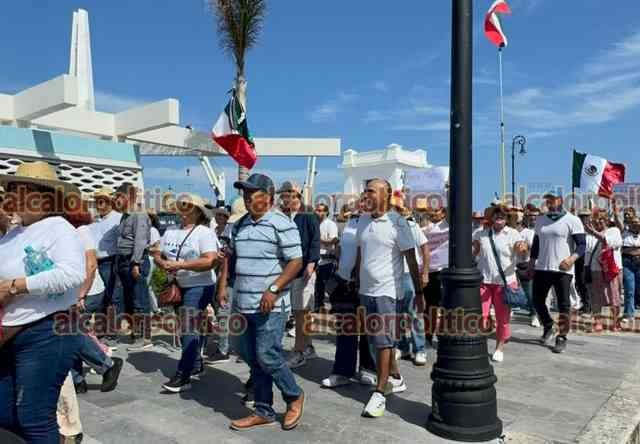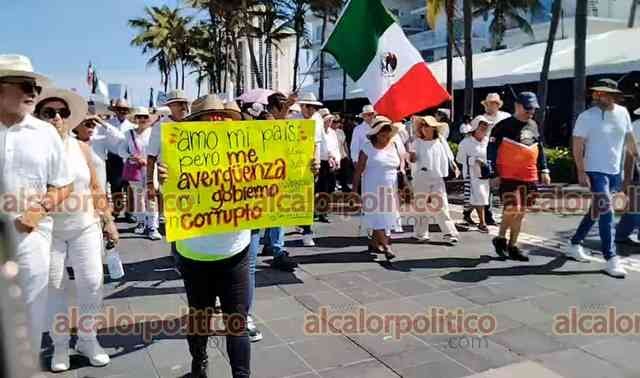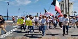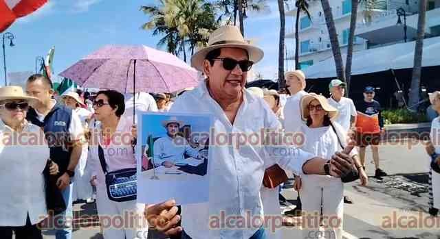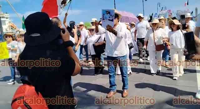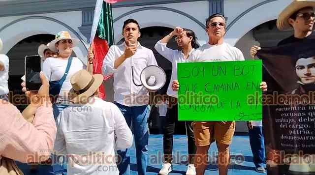 Veracruz, Ver., 15 de noviembre de 2025.- Gritando consignas contra MORENA y la gobernadora Rocío Nahle, manifestantes que portan fotos del alcalde asesinado de Uruapan, Carlos Manzo, marcharon en la Macroplaza del malecón para exigir justicia en el País.