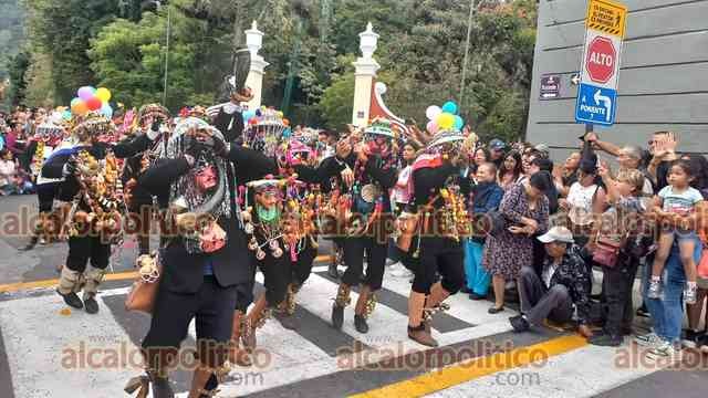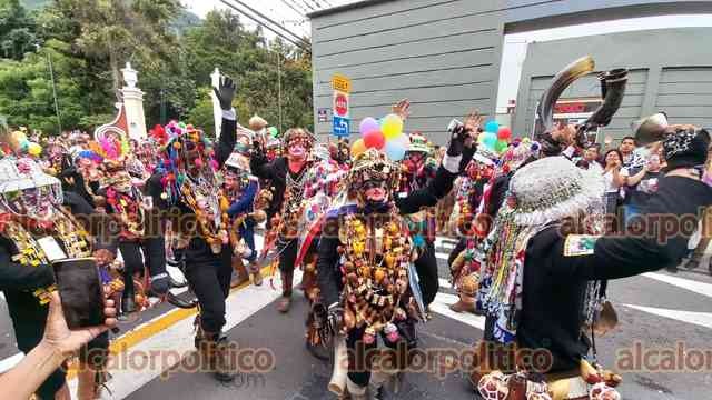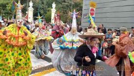 Orizaba, Ver., 16 de noviembre de 2025.- Músicos y danzantes de diferentes partes del país, parte del Festival de Máscaras Danzantes de Coscomatepec, mostraron la tarde de este domingo su arte, danzas, tradición y cultura por las calles de este Pueblo Mágico.