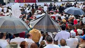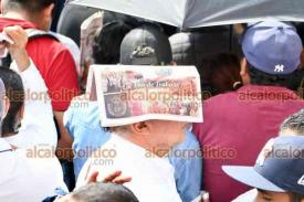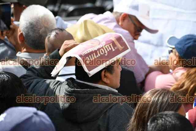 Xalapa, Ver., 30 de noviembre de 2025.- Ante el calor y el sol durante el Informe de Gobierno, los asistentes se cubrieron con lo que pudieron, usando el periódico que se repartió con motivo del evento.