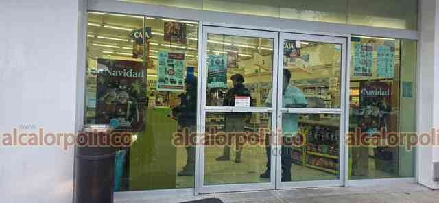 Xalapa, Ver., 8 de diciembre de 2025.- Empleados de la Farmacia Guadalajara ubicada sobre la avenida Ruiz Cortines, en la colonia Obrero Campesina, activaron la alarma silenciosa tras detectar a una persona sospechosa, lo que generó una rápida movilización policiaca. El sujeto se retiró antes de la llegada de las autoridades.