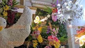 La Perla, Ver., 12 de diciembre de 2025.- Como cada año, para celebrar a la Virgen de Guadalupe, miles de flores de diversos tipos y frutas adornan la Iglesia Santa María de Guadalupe, arte que disfrutan turistas y locales.