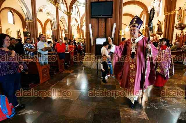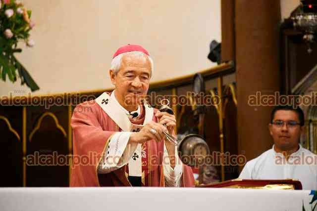 Xalapa, Ver., 14 de diciembre de 2025.- El arzobispo de Xalapa, Jorge Patrón Wong, ofició la misa dominical en Catedral.