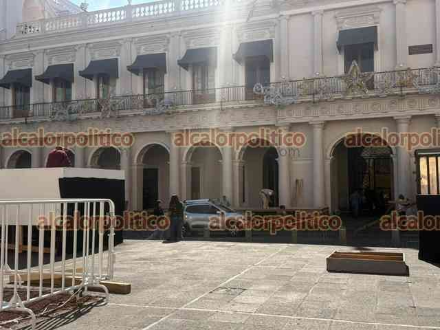 Xalapa, Ver., 18 de diciembre de 2025.- Alistan templetes para el desfile navideño "Luz y Unión" de este viernes a las 18:00 horas.