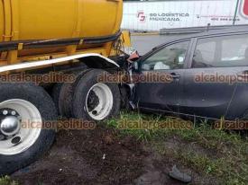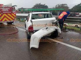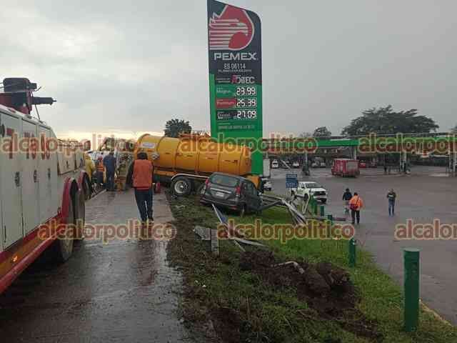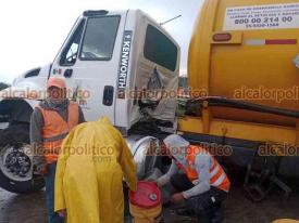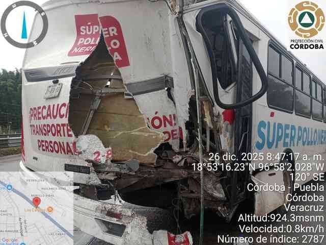 Córdoba, Ver., 26 de diciembre de 2025.- De entre los vehículos siniestrados, una pipa fue considerada la de mayor riesgo pues transportaba hipoclorito de sodio; sin embargo, autoridades confirmaron que sólo presentó una fuga de diésel.