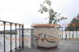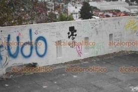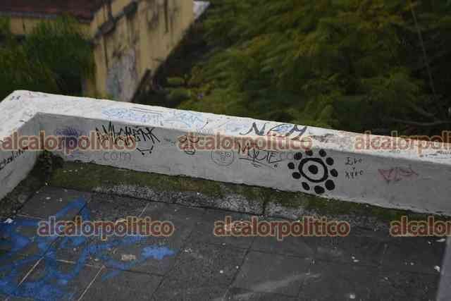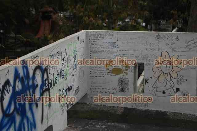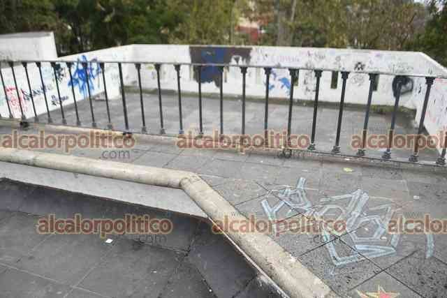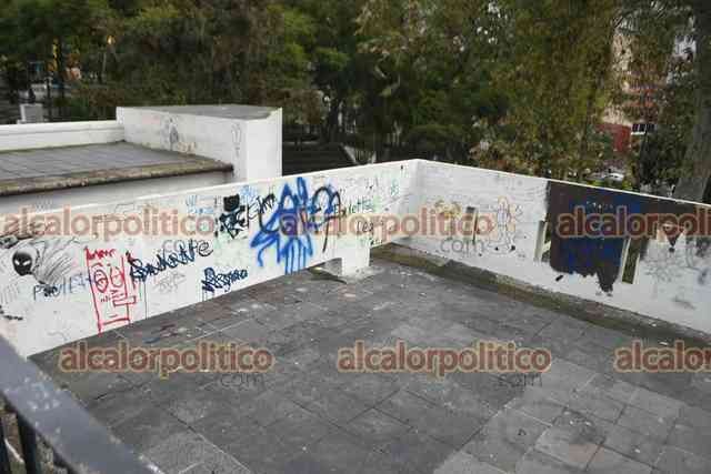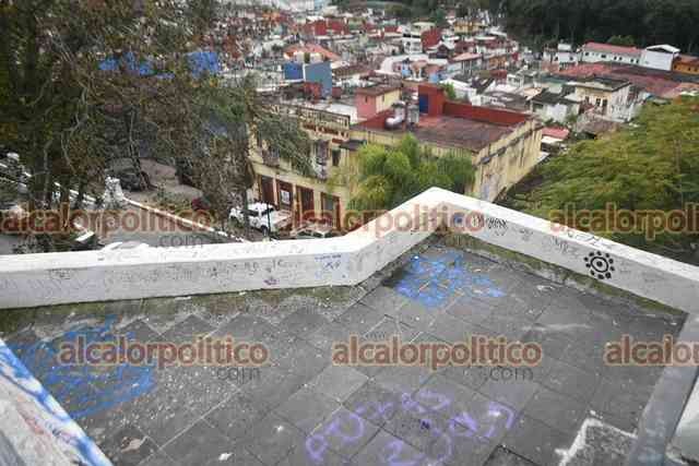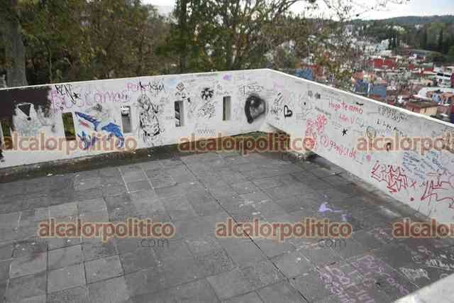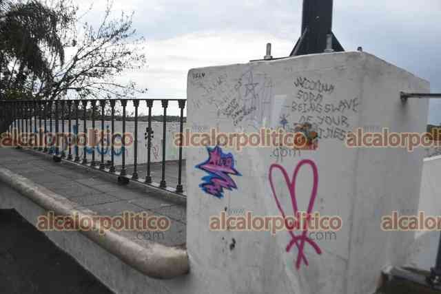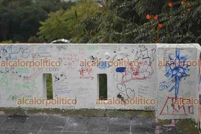 Xalapa, Ver., 26 de diciembre de 2025.- Parte del mirador del parque Juárez se observa grafiteado y sucio. Ante la falta de vigilancia y luz, algunos aprovechan para rayar las paredes.