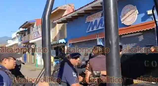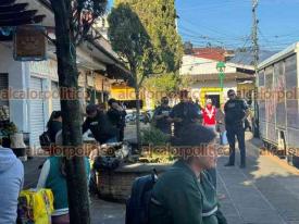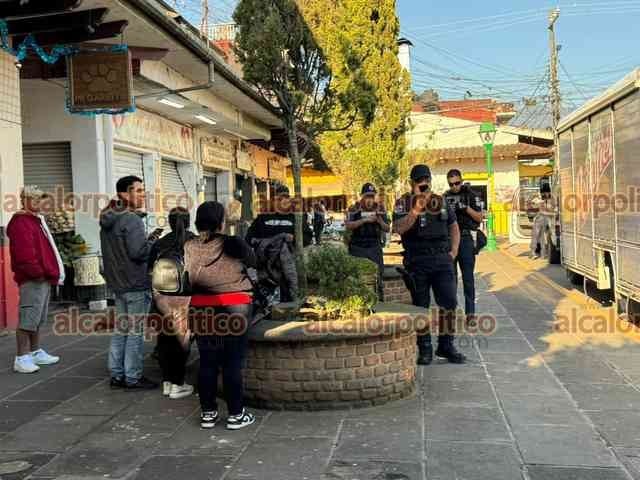 Coatepec , Ver., 27 de diciembre de 2025.- La mañana de este sábado, policías municipales quitaron a comerciantes antorchistas que habían colocado sus puestos en las inmediaciones del Mercado Municipal. Además, entre patadas y empujones se llevaron a un hombre detenido.