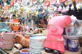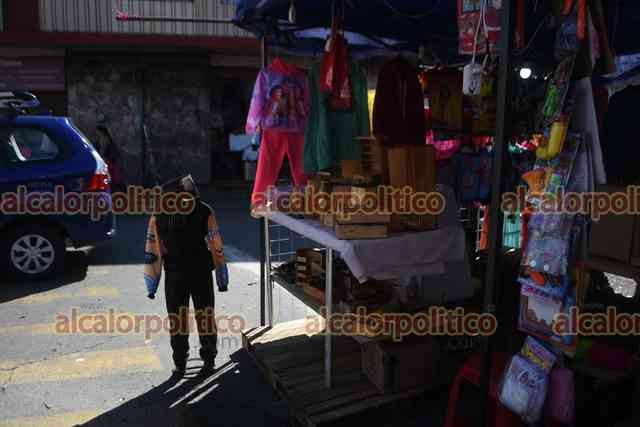 Xalapa, Ver., 27 de diciembre de 2025.- Alrededor del Mercado de Los Sauces comerciantes colocaron puestos donde venden desde dulces típicos, artesanías, ropa y juguetes.