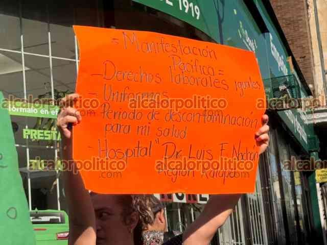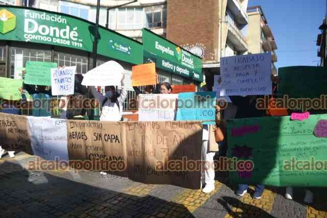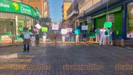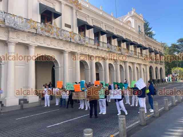 Xalapa, Ver., 29 de diciembre de 2025.- Trabajadores del Hospital Regional “Luis F. Nachón” (antes Civil), bloquearon la calle Primo Verdad para demandar el pago de prestaciones. Después liberaron y cerraron la calle Enríquez. El paso quedó abierto al mediodía.