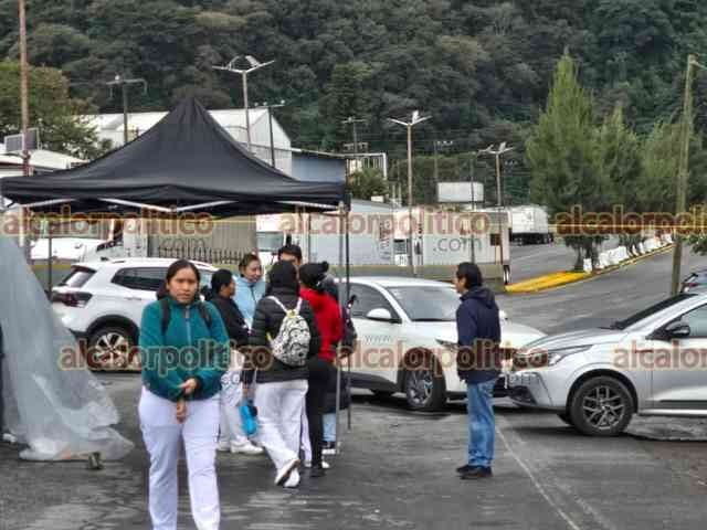 Río Blanco, Ver., 30 de diciembre de 2025.- Trabajadores del IMSS-Bienestar cumplieron 27 horas bloqueando el entronque a la autopista Orizaba-Mendoza para exigir el pago de prestaciones. La Guardia Nacional cerró el entronque en el carril de bajada y de subida para evitar el paso de vehículos a esta zona. Deben de buscar vías alternas hacia la autopista.
