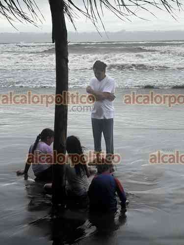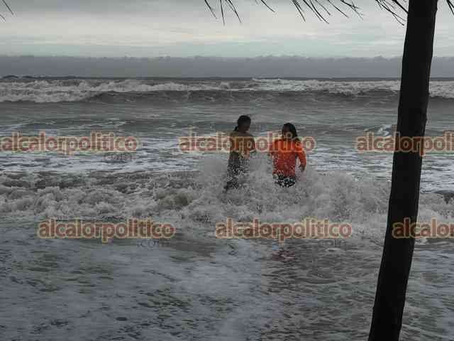 Úrsulo Galván, Ver., 30 de diciembre de 2025.- Pese al “Norte”, turistas llegaron a bordo de autobuses a Playa Chachalacas, donde recibirán el año nuevo y el primer amanecer. El Agrupamiento Marítimo de SSP y PC Municipal piden no meterse a partes profundas.