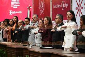 Xalapa, Ver., 31 de diciembre de 2025.- Daniela Griego Ceballos tomó protesta como alcaldesa. En el presidium la acompañaron la gobernadora Rocío Nahle García así como su equipo de trabajo. Al acto asistieron, entre otros, las titulares de los poderes Legislativo y Judicial, el alcalde saliente, el Rector de la UV y diputados.