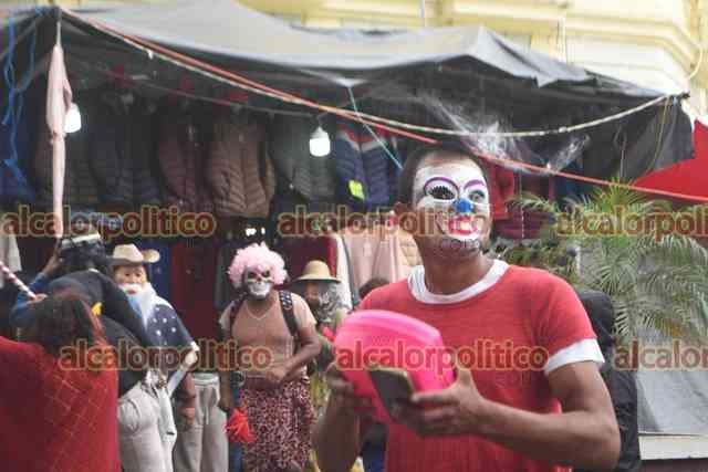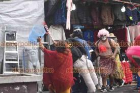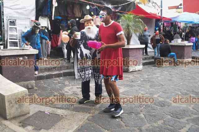 Xalapa, Ver., 31 de diciembre de 2025.- Personas disfrazadas de mujer, bailan y festejan al tradicional “Viejo” en la zona de mercados de la Capital.