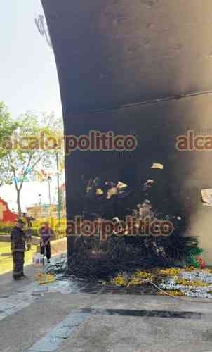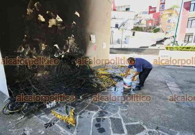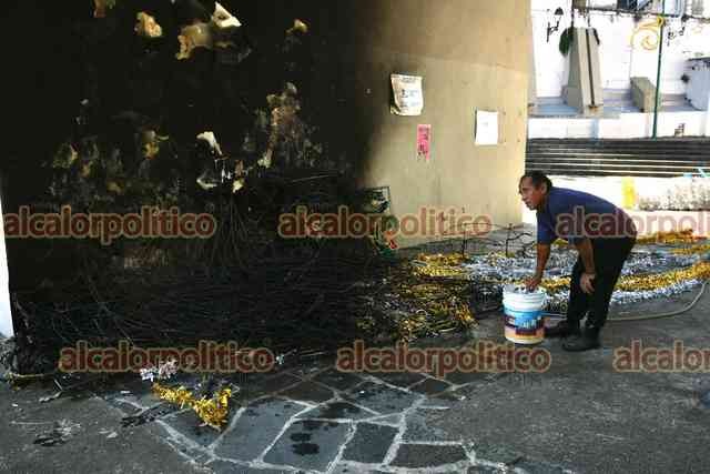 Xalapa, Ver., 2 de enero de 2026.- Bajo el puente de Xallitic, hombre en situación de calle le prendió fuego a adornos navideños en el sitio. Personas que se encontraban en los lavaderos corrieron con cubetas a apagar el fuego. El responsable huyó.