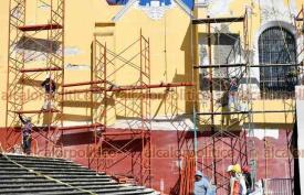 Xalapa, Ver., 7 de enero de 2026.- Comenzaron los trabajos de restauración de la Catedral Metropolitana, la cual será pintada de color blanco ostión, al igual que Palacio de Gobierno, el Hotel México, Pasaje Tanos y el Edificio Xalapa, como parte del proyecto de rehabilitación del Centro Histórico.