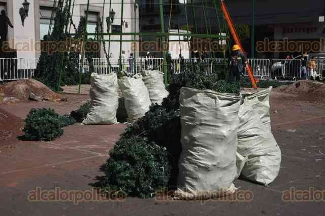 Xalapa, Ver., 9 de enero de 2026.- Comienzan a quitar el árbol de Navidad de Plaza Lerdo.