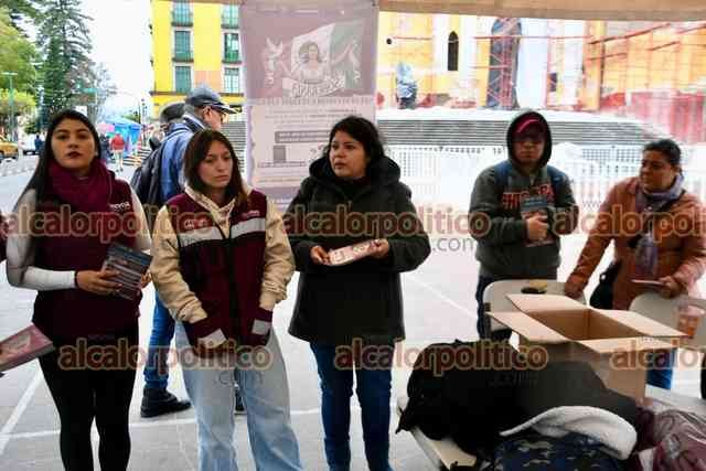 Xalapa, Ver., 11 de enero de 2026.- Con un módulo colocado en Plaza Lerdo, militantes de MORENA realizaron Jornadas en Defensa de la Soberanía Nacional.