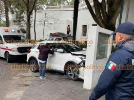 Xalapa, Ver., 12 de enero de 2026.- Mujer de 63 años perdió el control de su camioneta y se estrelló contra la estructura de concreto que resguada una placa a las afueras del Viaducto, en el Centro.