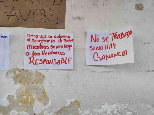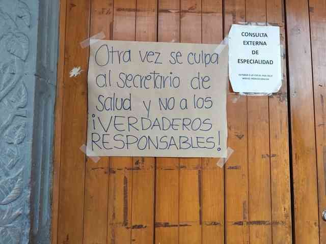 Coatepec, Ver., 16 de enero de 2026.- Personal del Hospital de la Comunidad también protestó para exigir su paga. “Otra vez se culpará al Secretario de Salud (Valentín Herrera) mientras se protege a los verdaderos responsables”, escribieron en un cartel