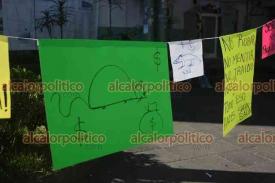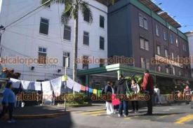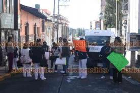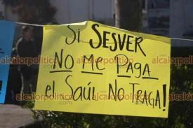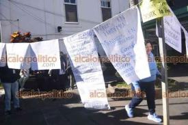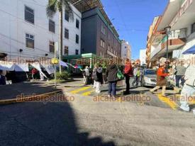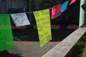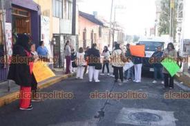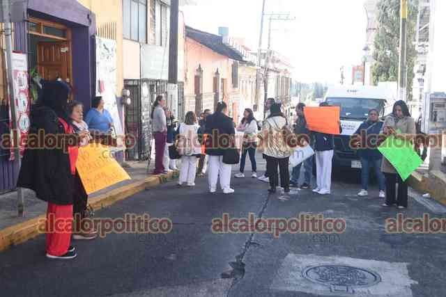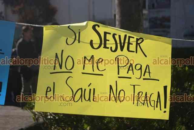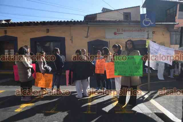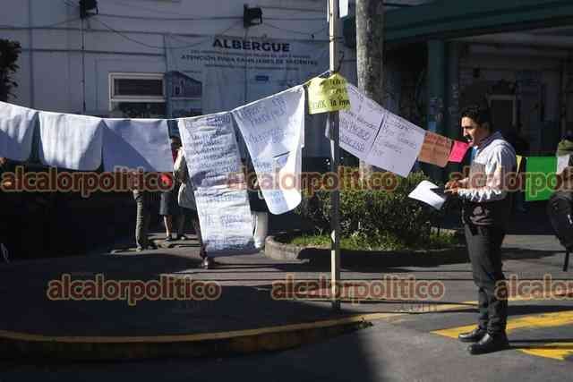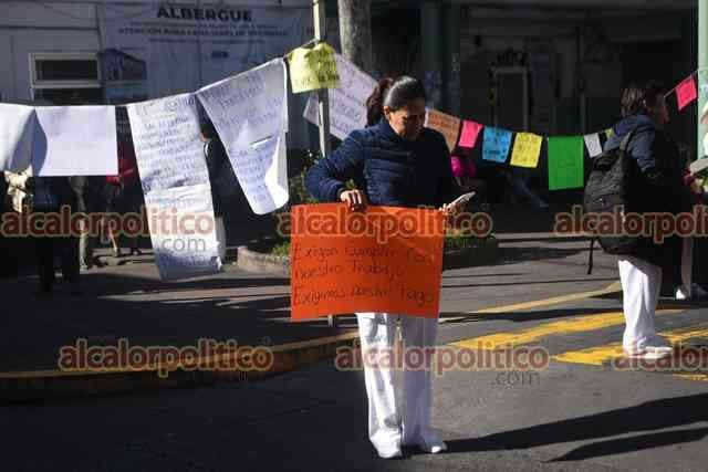 Xalapa, Ver., 16 de enero de 2026.- Para demandar su pagar, trabajadores del Hospital “Luis F. Nachón” bloquearon la calle Nicolás Bravo.