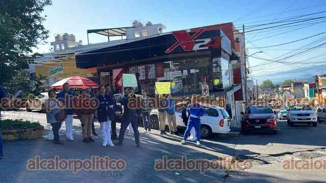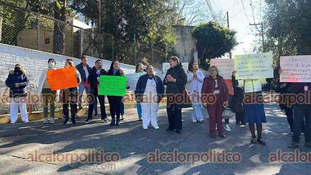 Xalapa, Ver., 16 de enero de 2026.- Como ocurre en diversos hospitales de la entidad, a las afueras de la Secretaría de Salud trabajadores protestan para reclamar su salario.