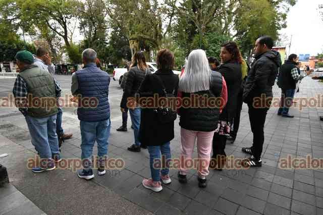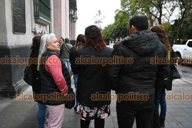 Xalapa, Ver., 19 de enero de 2026.- Trabajadores de la UPAV acudieron a Palacio de Gobierno para manifestar su inconformidad por la falta de pagos.