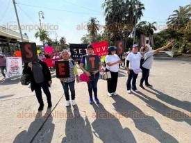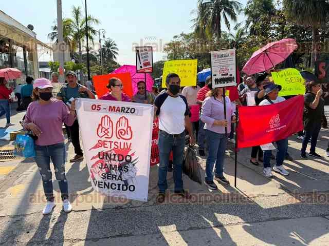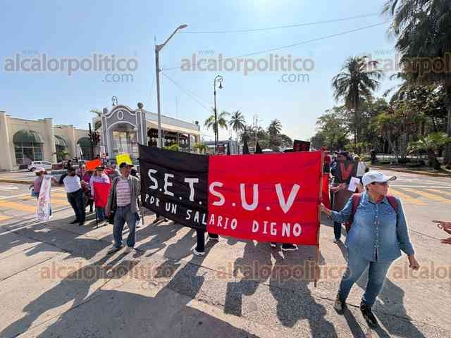 Veracruz, Ver., 4 de febrero de 2026.- Trabajadores del SETSUV marcharon por calles del Centro Histórico. Salieron del Tranvía del Recuerdo hacia el Zócalo.