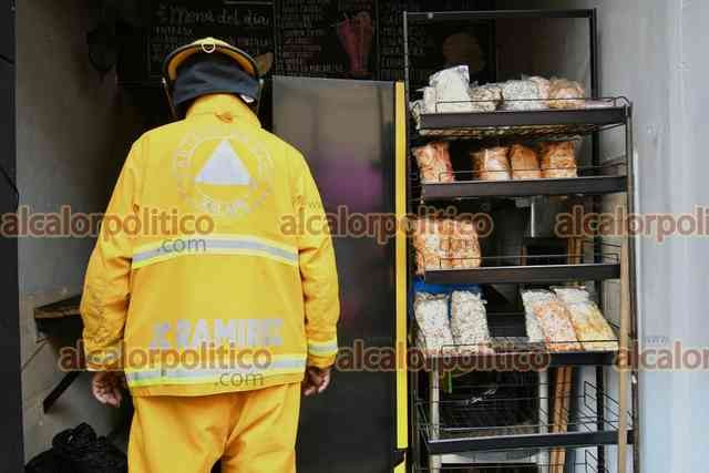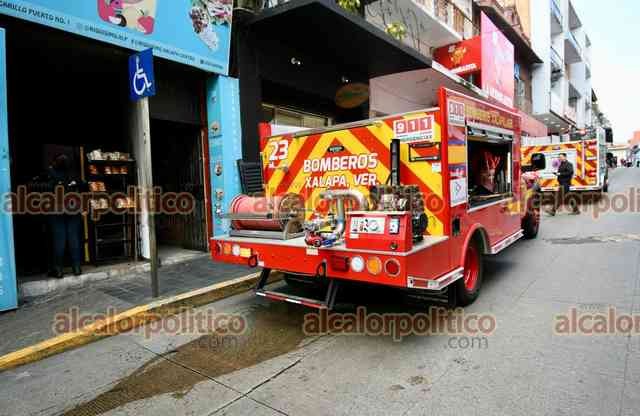 Xalapa, Ver., 4 de febrero de 2026.- Conato de incendio en local comercial de la calle Carrillo Puerto, en la zona Centro. Al lugar acudió personal de bomberos.