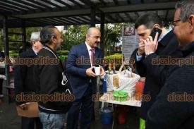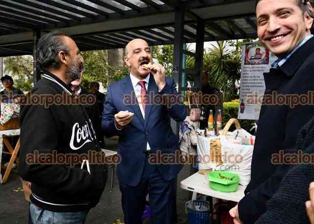 Xalapa, Ver., 5 de febrero de 2026.- El secretario de Gobierno, Ricardo Ahued, hizo una parada para comerse unos tacos en el Parque Juárez, donde comentó a sus colaboradores que no por vestir de traje no podían comer ahí.