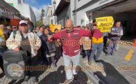 Xalapa, Ver., 6 de febrero de 2026.- Juan Piedra y un grupo de simpatizantes cerraron el paso en calles del centro de la Capital. El líder bailó y anunció que quiere ser el dirigente municipal de MORENA.