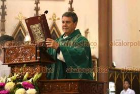 Xalapa, Ver., 8 de febrero de 2026.- El obispo chileno Andrés Ferrada Moreirea y su hermano Fernando, de visita en la Arquidiócesis de Xalapa, oficiaron la misa dominical en Catedral.
