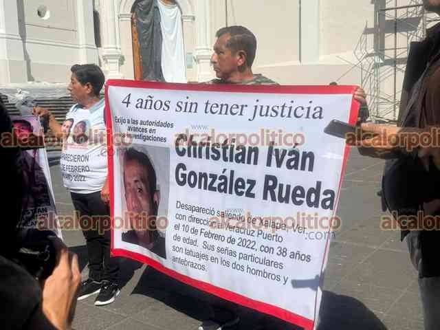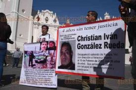 Xalapa, Ver., 10 de febrero de 2026.- Familiares de Christian Iván González, desaparecido hace 4 años, se manifestaron en Plaza Lerdo para exigir avances en la investigación.