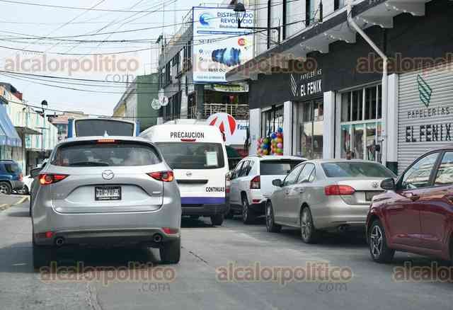 Xalapa, Ver., 13 de febrero de 2026.- A pesar de los letreros de “no estacionarse” sobre la calle Altamirano, automovilistas los ignoran, complicando el tráfico vehicular en toda la zona.