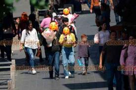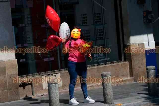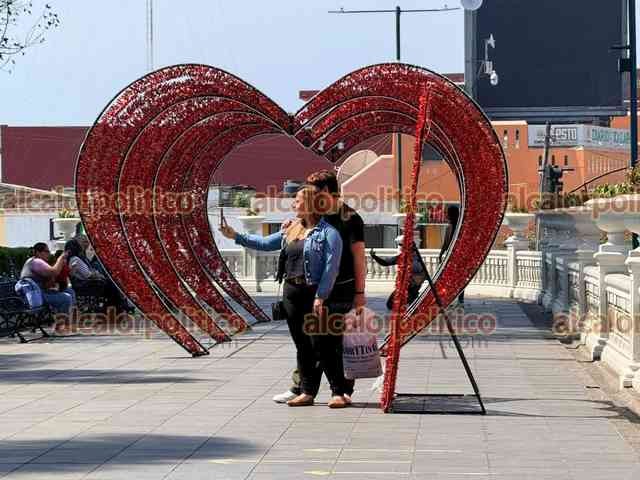Xalapa, Ver., 14 de febrero de 2026.- Ciudadanos aprovechan adornos del parque Juárez para enmarcar recuerdos, mientras que otros ya llevan o recibieron un detalle de su ser querido.